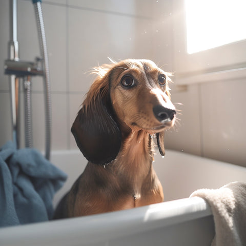 Bathe your Long Haired Dachshund as needed using a gentle dog shampoo to help remove dead hair and keep their coat clean.