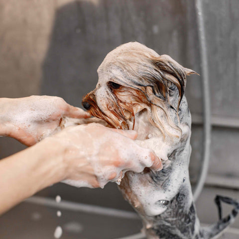 Bathing too often strips essential oils from your dog's skin. Only bathe your dog when they're visibly dirty or smelly, using lukewarm water.