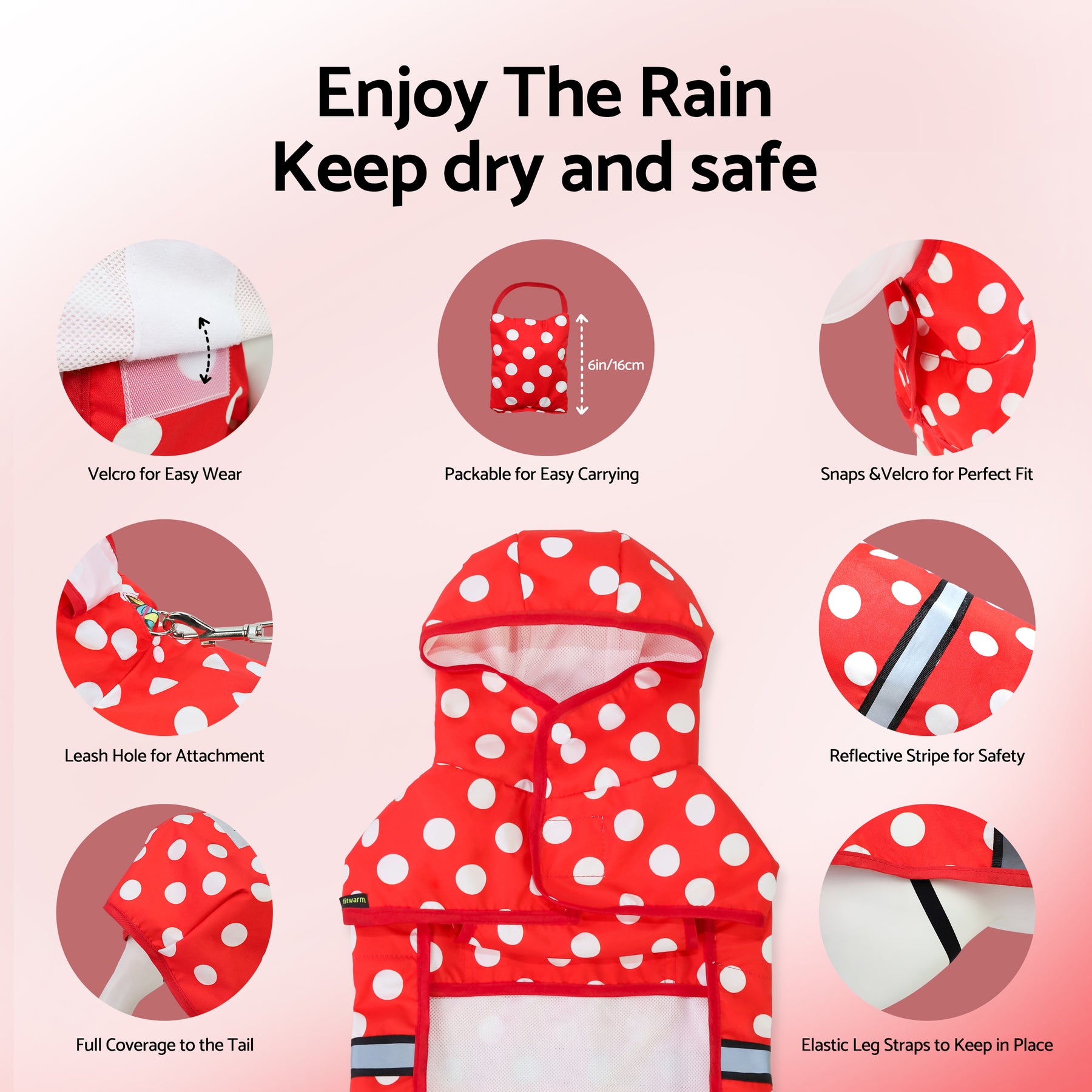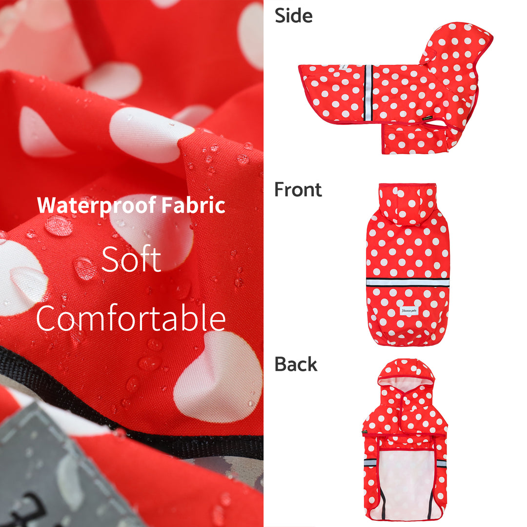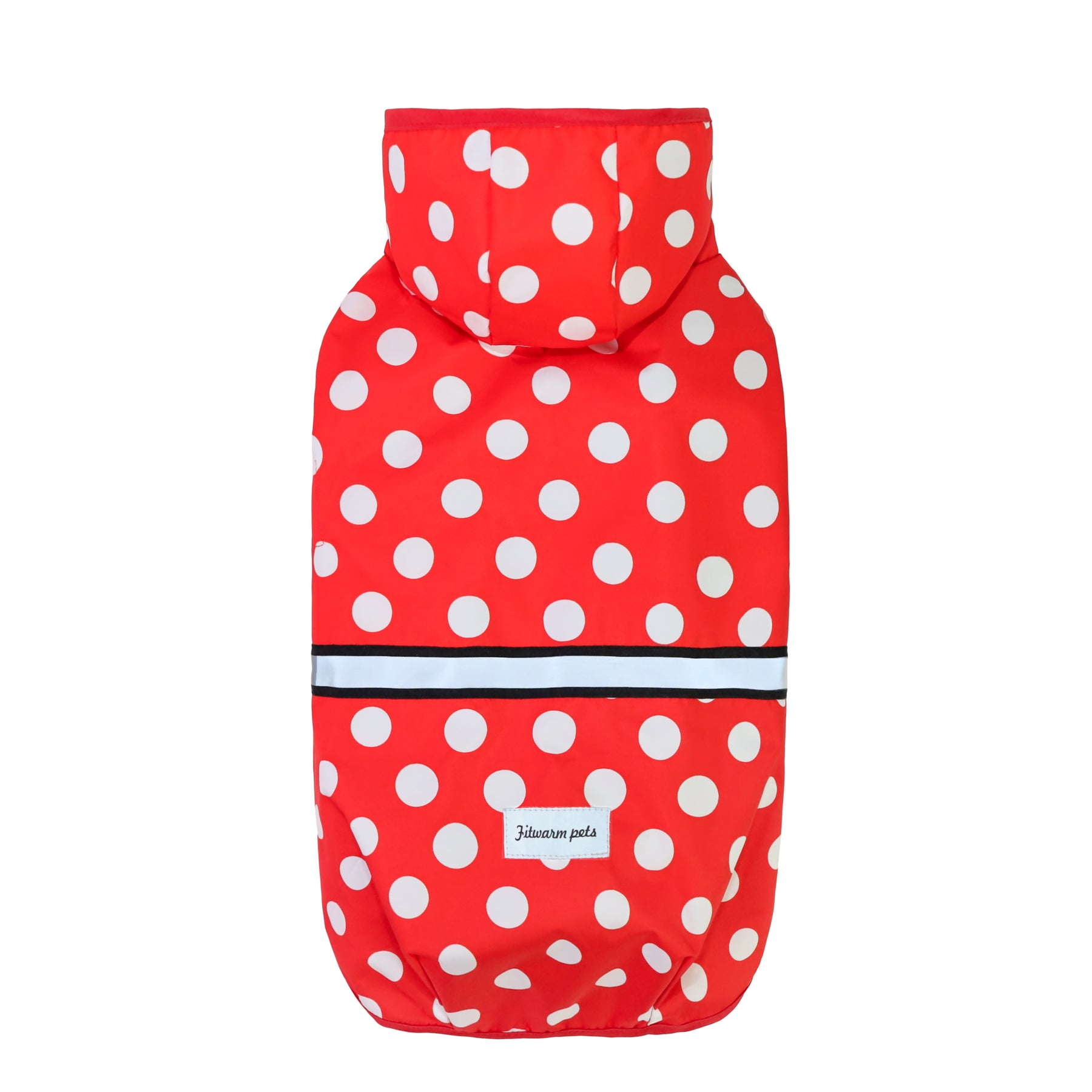 Polka Dot Dog Raincoat with Hood and Reflective Stripe by Fitwarm - Red, Waterproof, and Stylish
