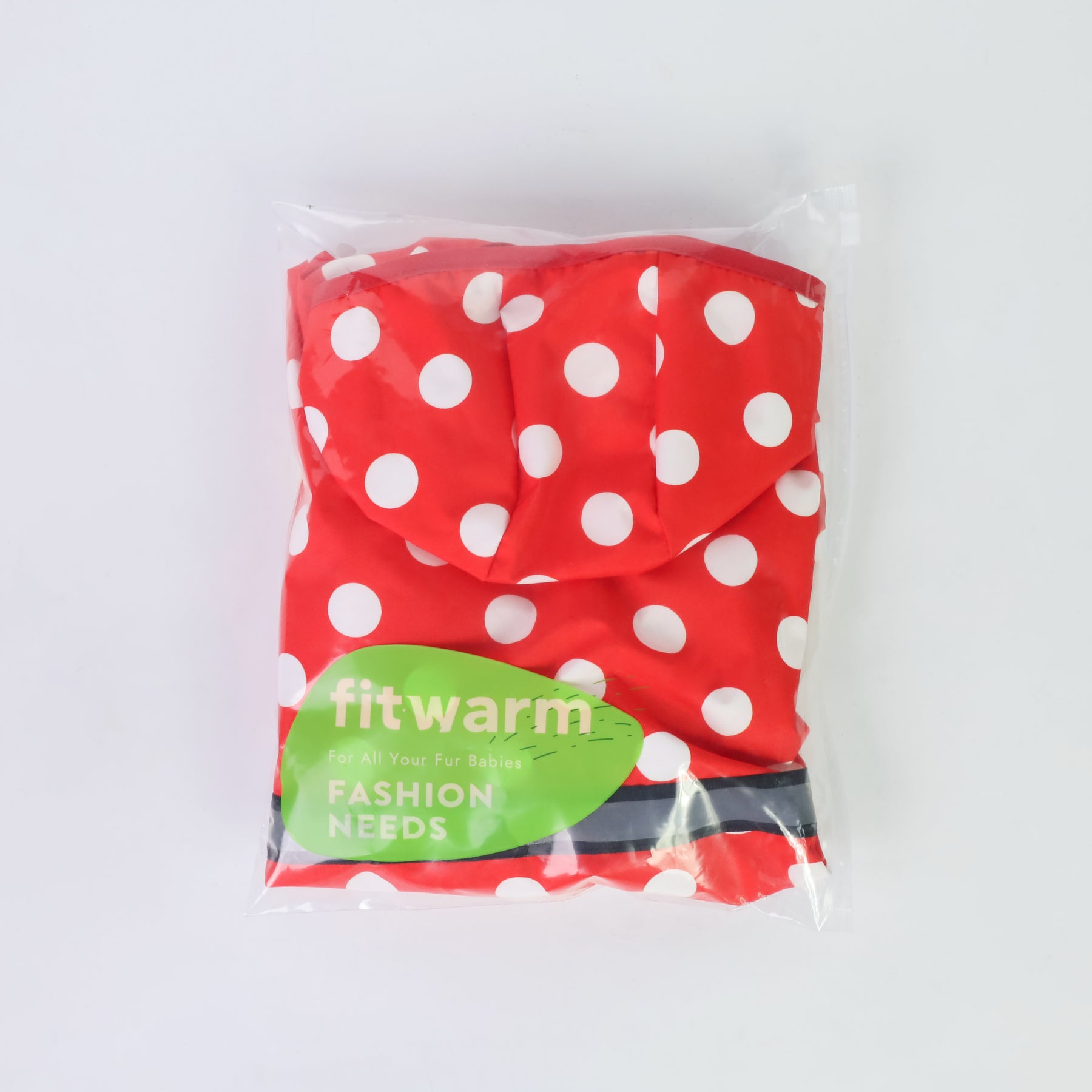Fitwarm polka dot dog raincoat. Red with white polka dots, waterproof and windproof, fashion needs.