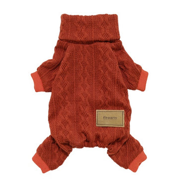 Rust-colored cable knit dog pajamas with turtleneck, perfect for cold weather, Fitwarm brand.
