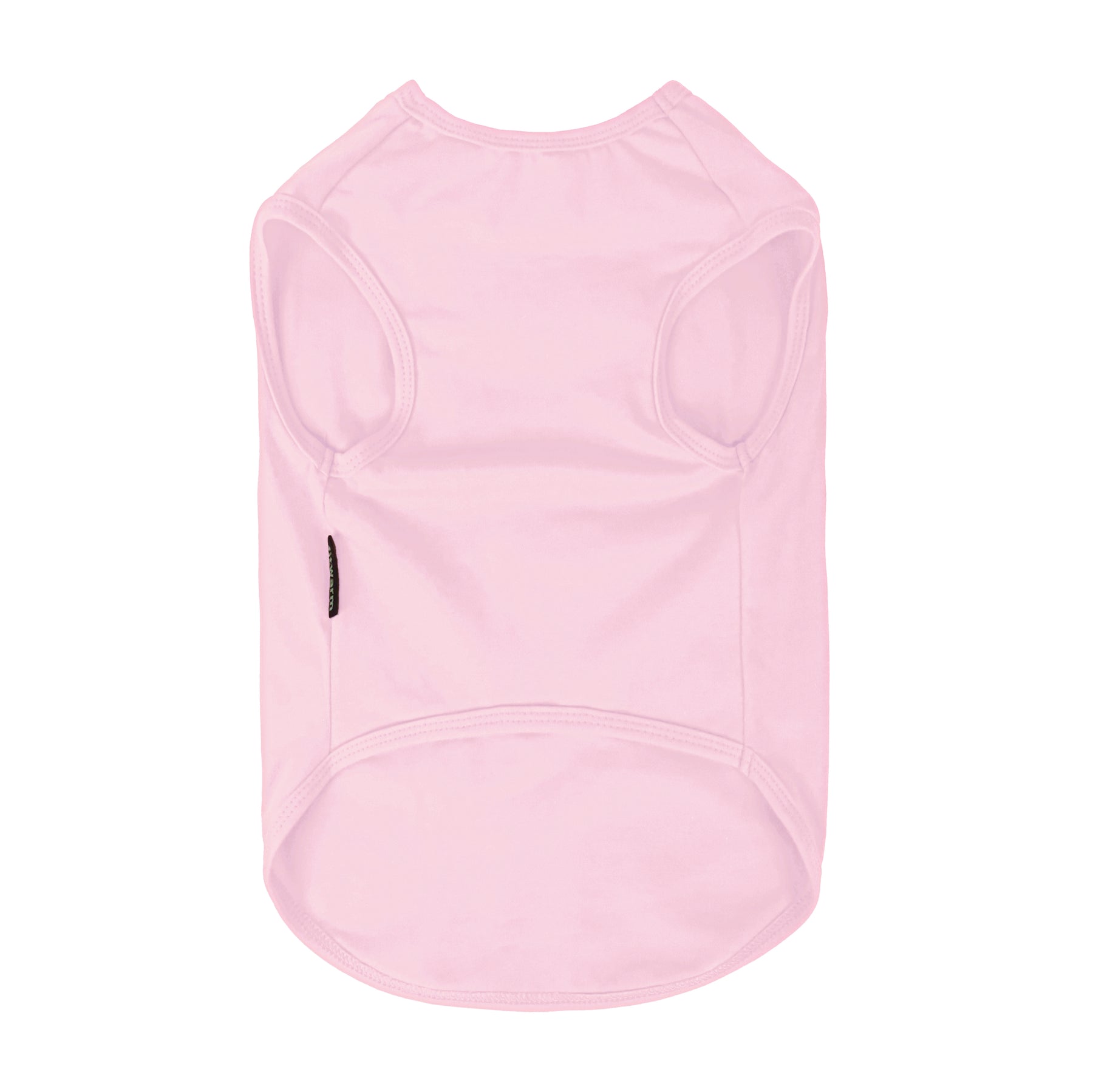Back view of pink dog shirt showing sleeveless cut and clean solid design.