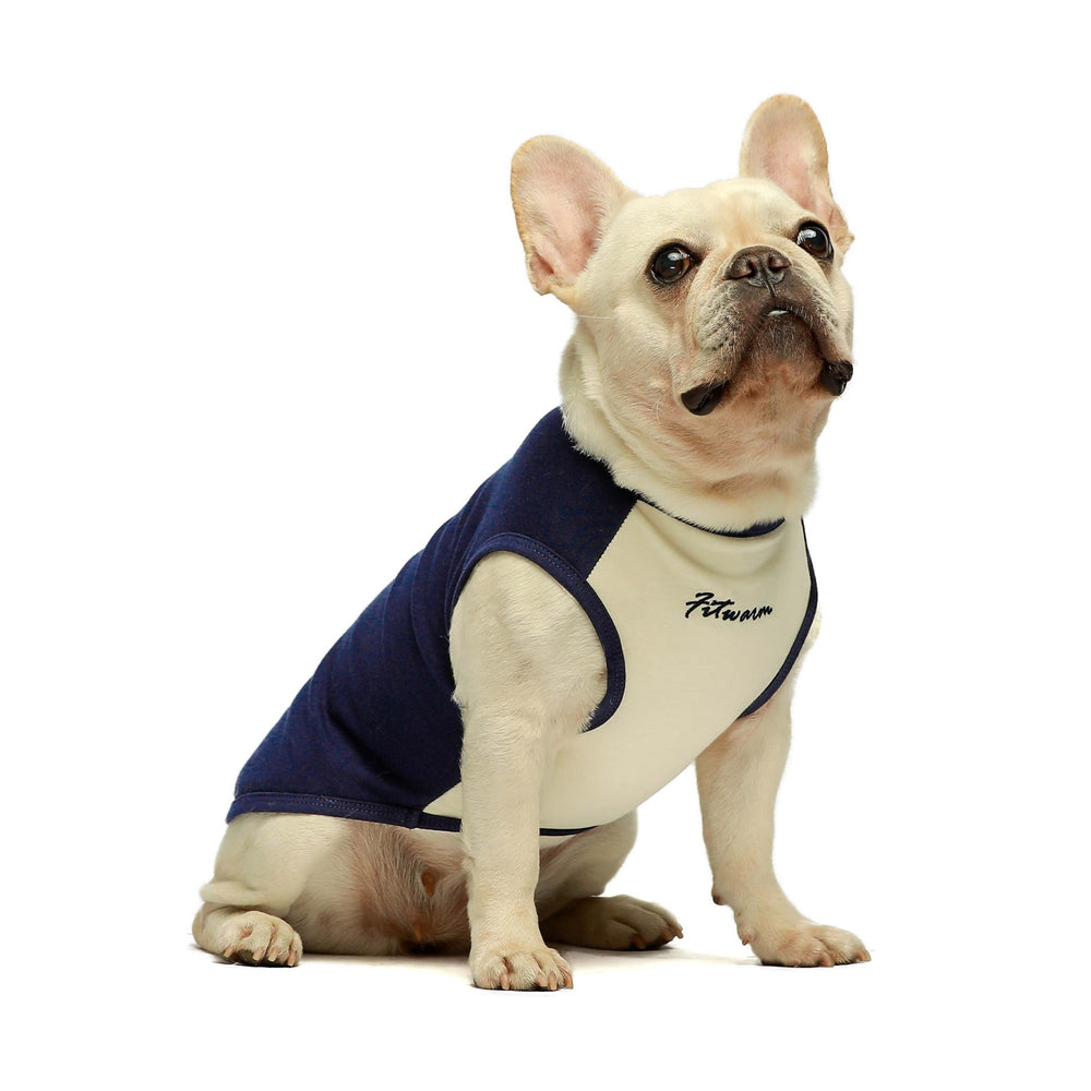 Fitwarm Basic Bold Shirt - Navy and Cream dog shirt, 100% soft cotton, comfortable for everyday wear, French Bulldog apparel