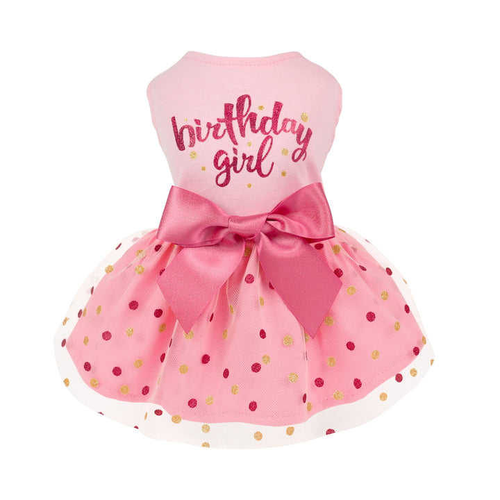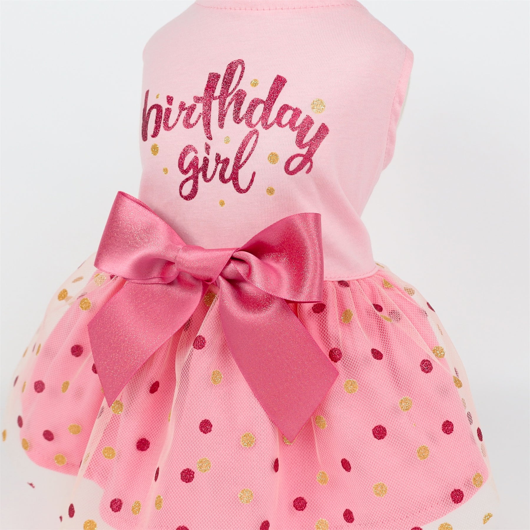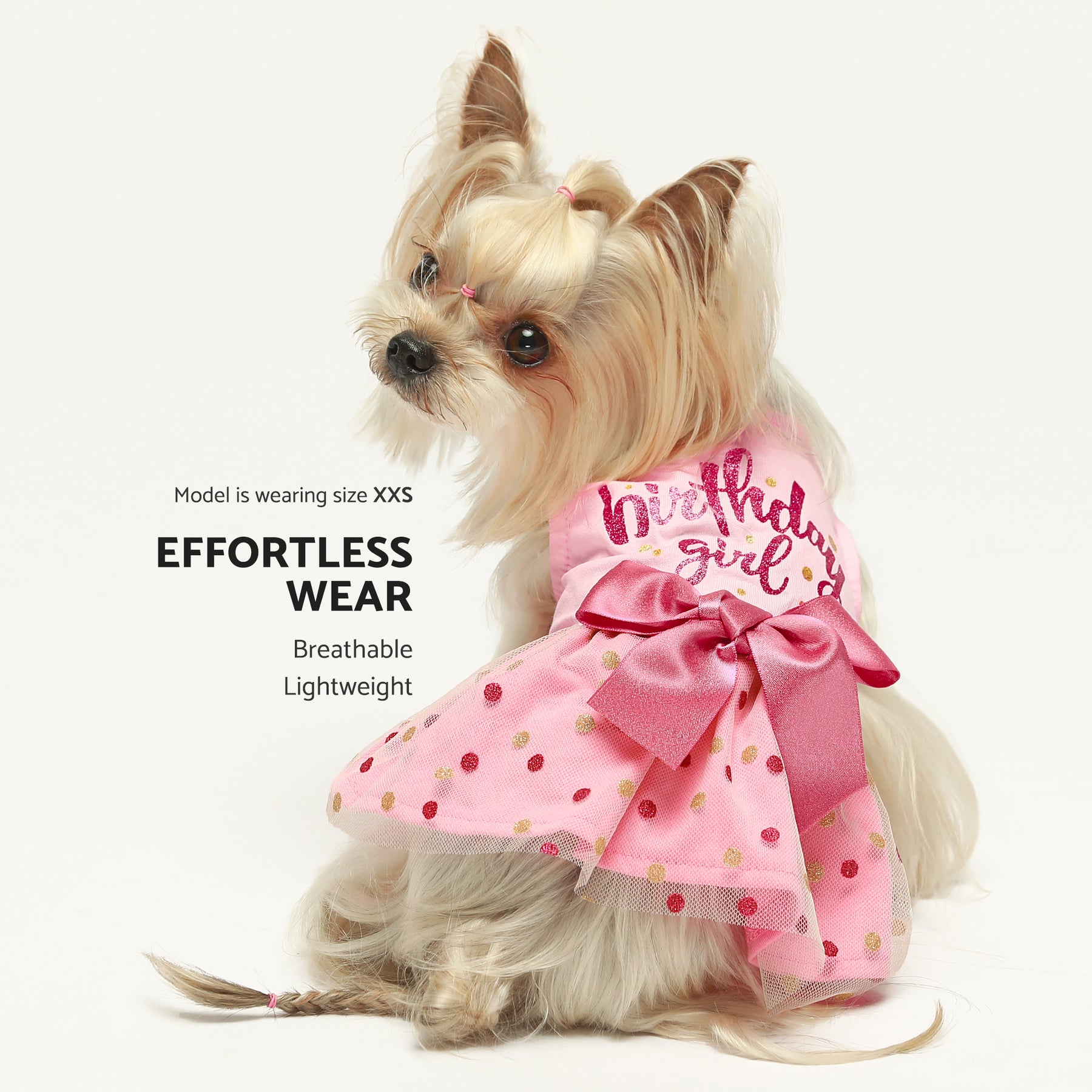 Fitwarm Birthday Girl dog dress, pink cotton dress with tulle skirt, perfect for special occasions and birthday parties.