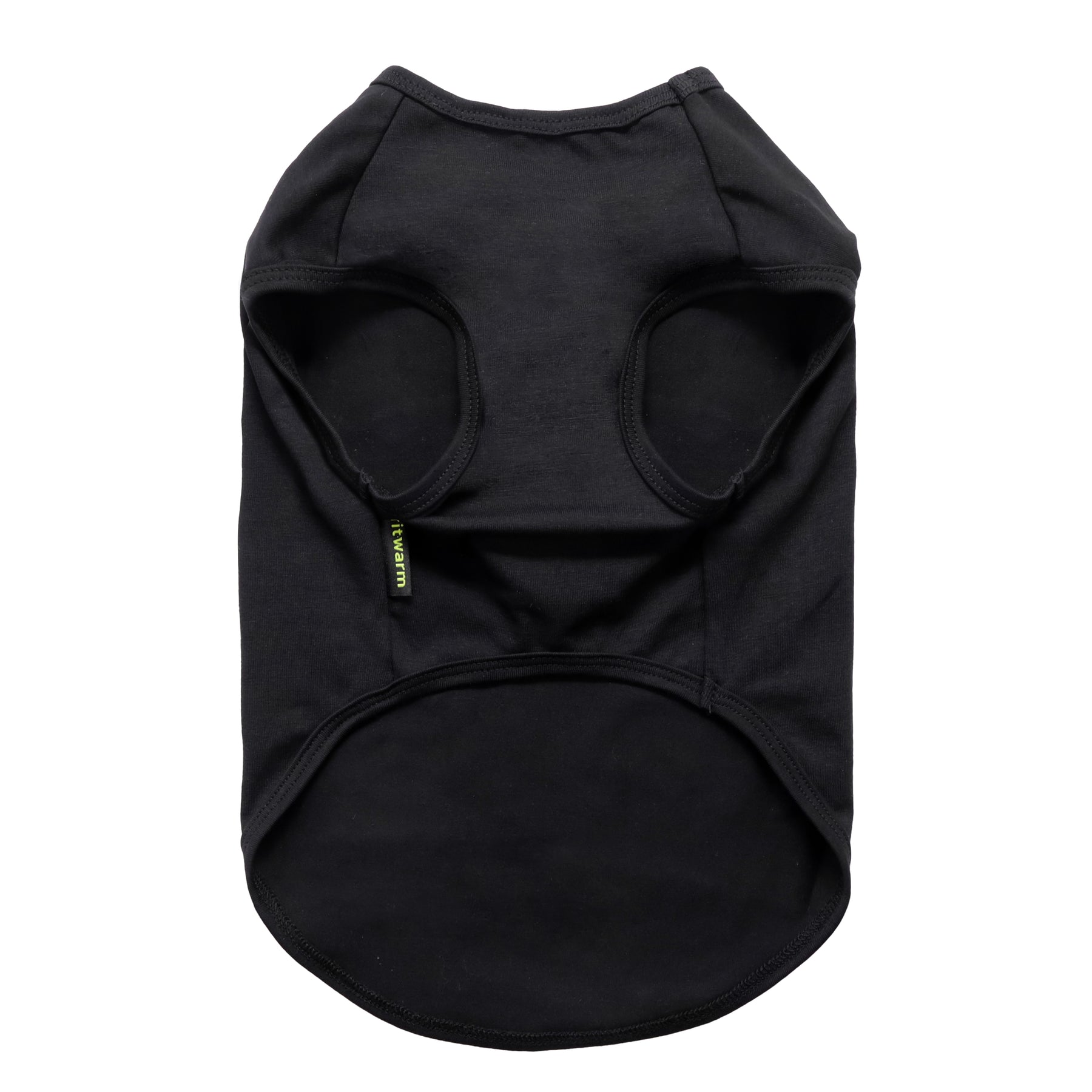Back view of plain black dog shirt made with soft and stretchy fabric.
