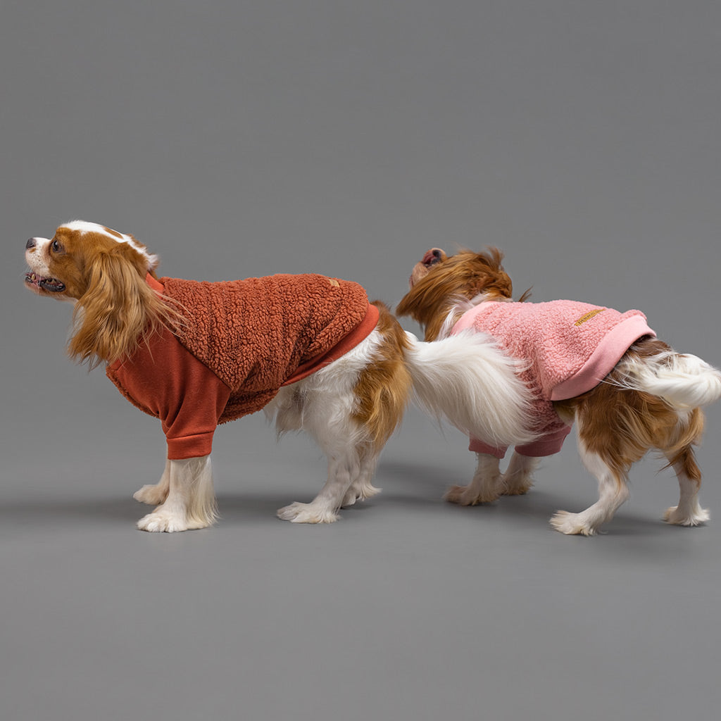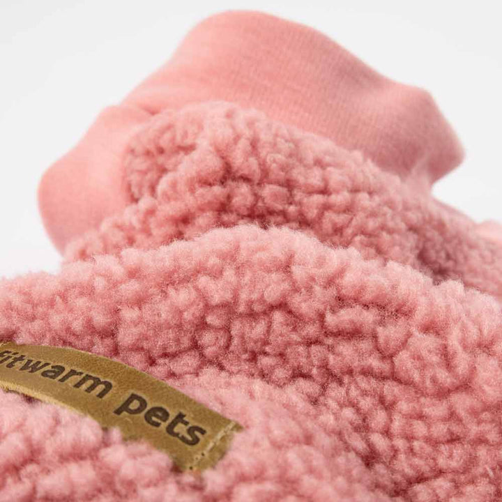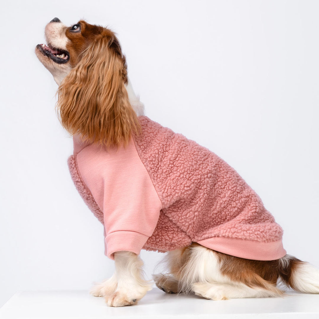 Love the Sherpa however the small (have it in red because pink is sold out) is not long enough and medium is too big (in pink) around her chest. Love this brand but this purchase was a waste.