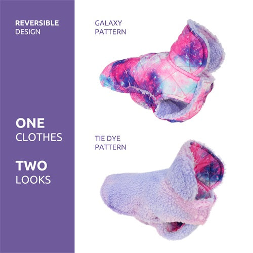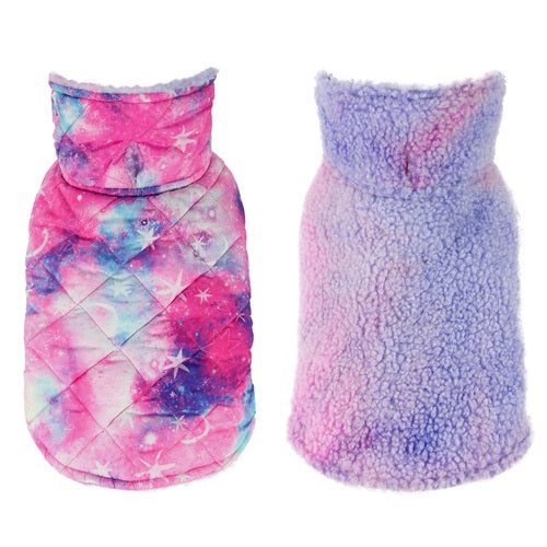 Reversible dog coat with galaxy and tie-dye patterns, Fitwarm winter apparel