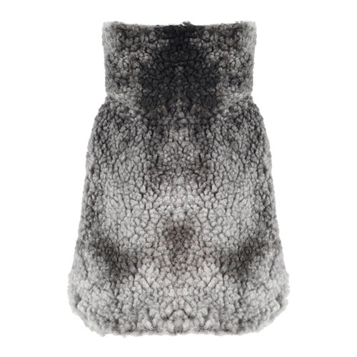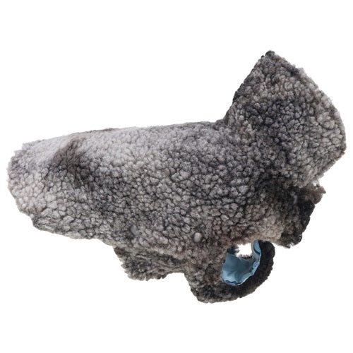 Gray sherpa dog coat with a high collar. Winter apparel for dogs from Fitwarm.