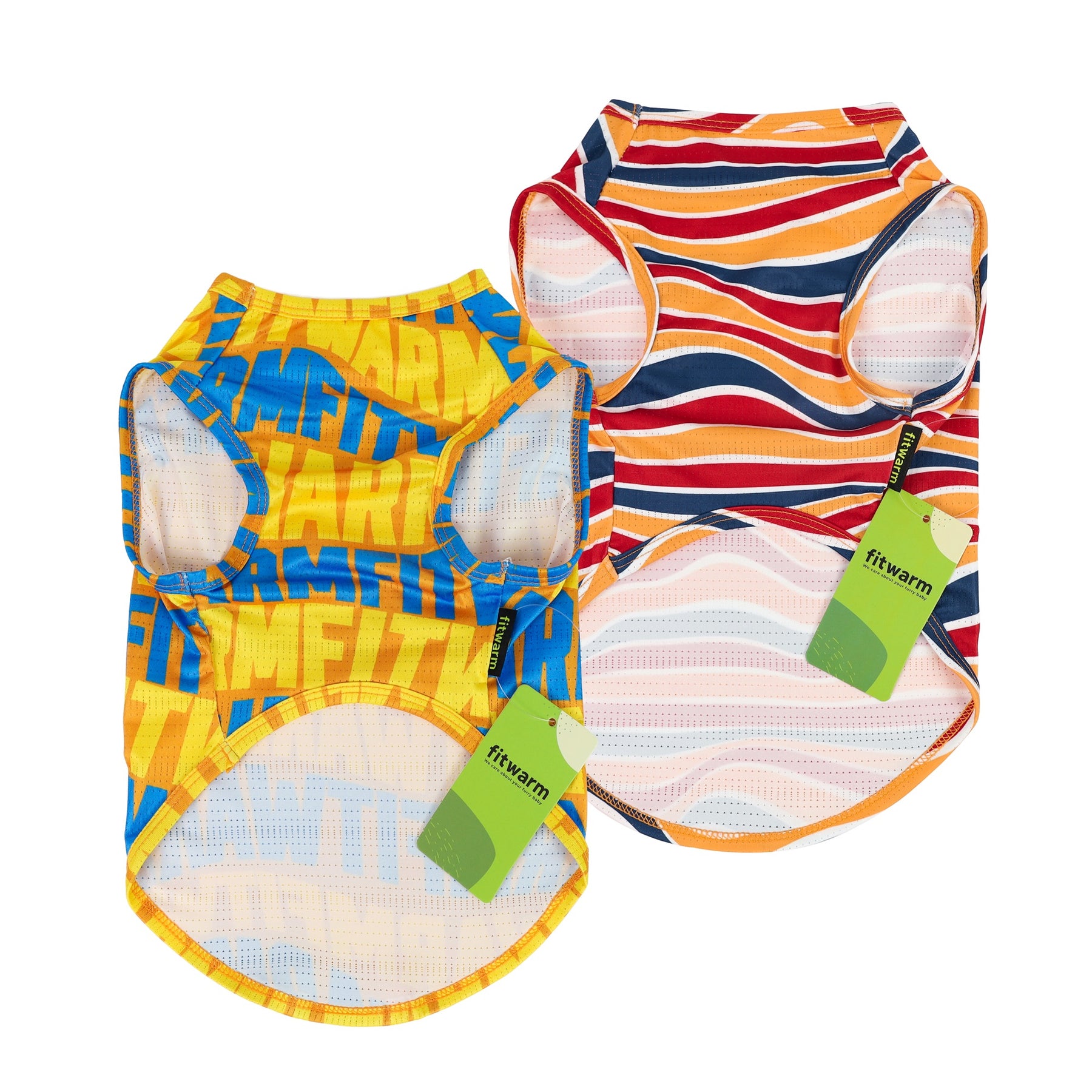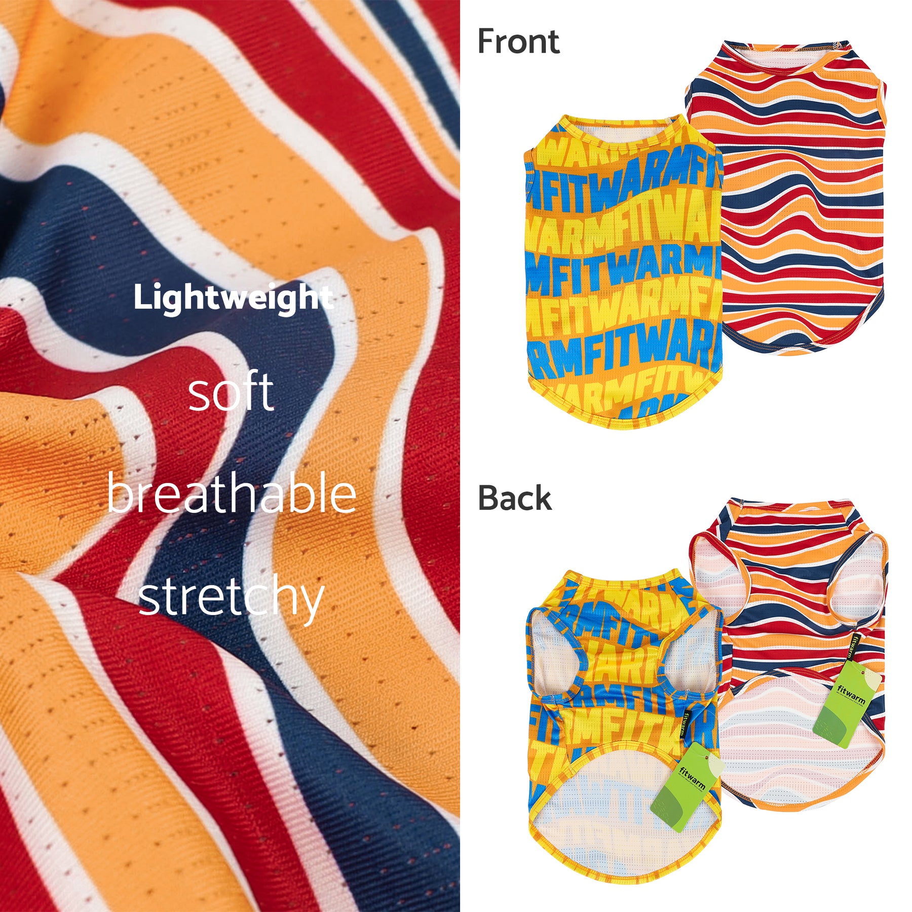 Fitwarm 2-Pack Lightweight Dog Shirts - Yellow & Stripe. Breathable mesh fabric, perfect for summer.