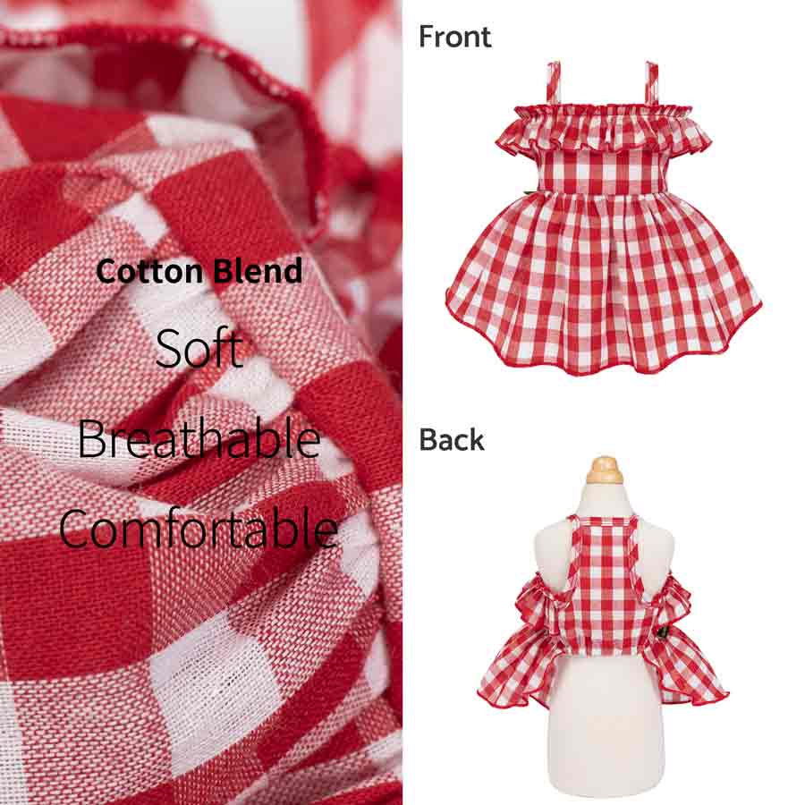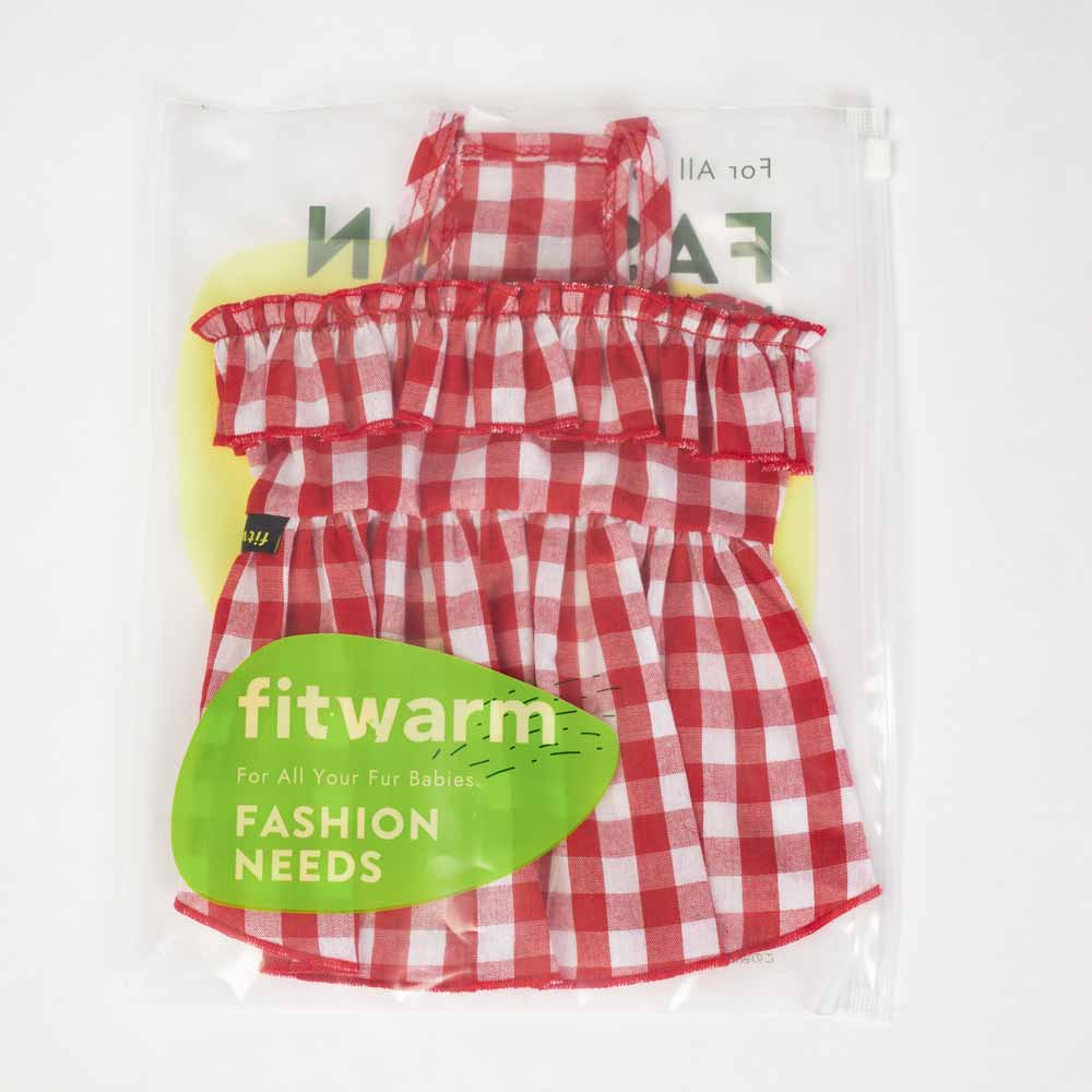 Fitwarm red gingham plaid dog dress. Bohemian summer style for small dogs. Fashion needs for all fur babies.