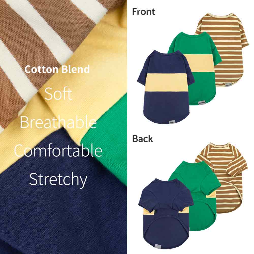 Fitwarm 3-pack small dog shirts: striped, color block. Breathable cotton tees for small dogs' comfort and style