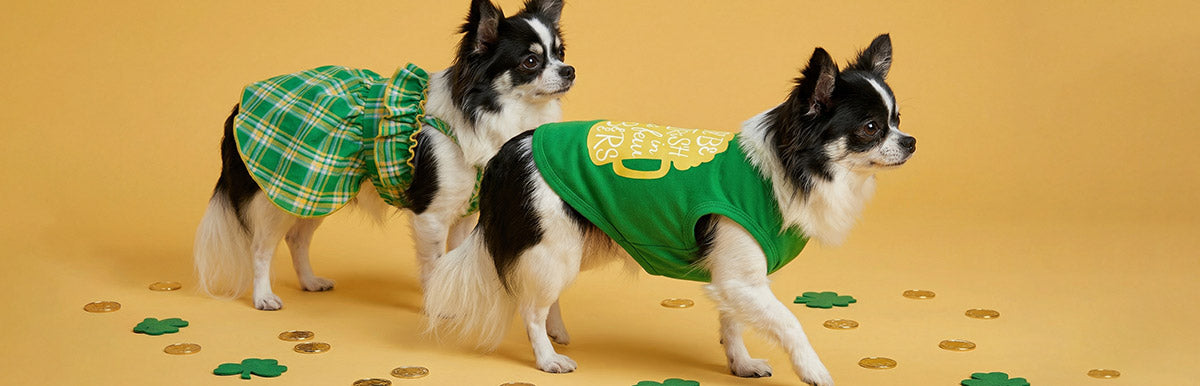 Embark on a whimsical journey with our enchanting St. Patrick's Day dog outfit collection, where every piece is a treasure waiting to be discovered. From the lush, verdant hues to the playful designs, each garment embodies the spirit of this cherished holiday. The collection seamlessly blends comfort and style, ensuring your furry companion can revel in the festivities without compromising their ease of movement. Whether adorned in a dapper green sweater or a charming leprechaun-inspired dress, your beloved pet will be the epitome of Irish charm. Step into a world of magic and merriment with our St. Patrick's Day dog outfits.