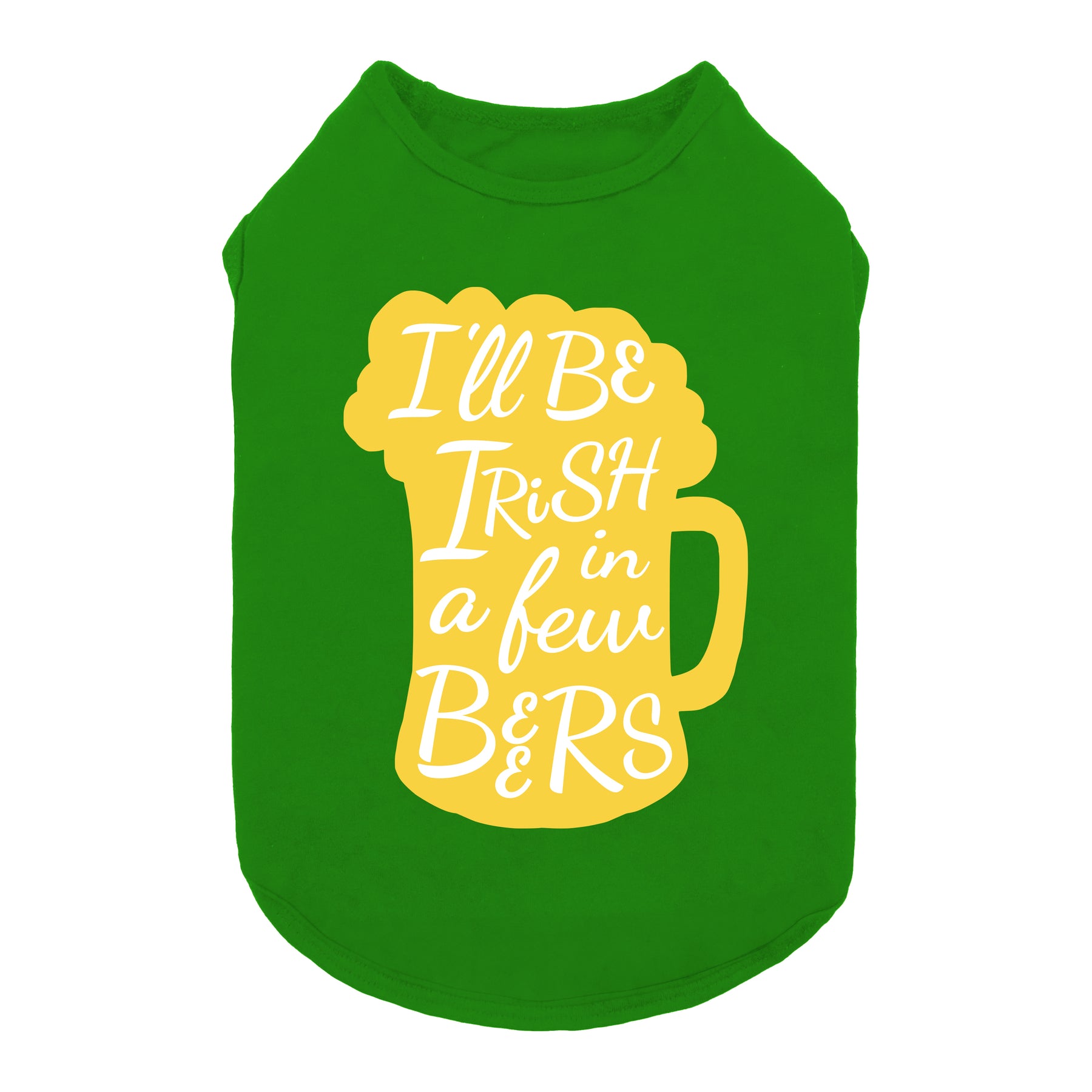 Spruce up your furry friend for St. Patrick's Day with our "I'll Be Irish in a few Beers" dog shirt, a top pick in t shirts for dogs. It captures the essence of funny dog shirts and embodies the festive spirit of a St. Patrick's Day dog outfit. With its lettering, this dog t shirt is not just attire, but a beacon of festivity and fun, ready to make your pet the center of attention at any celebratory gathering.