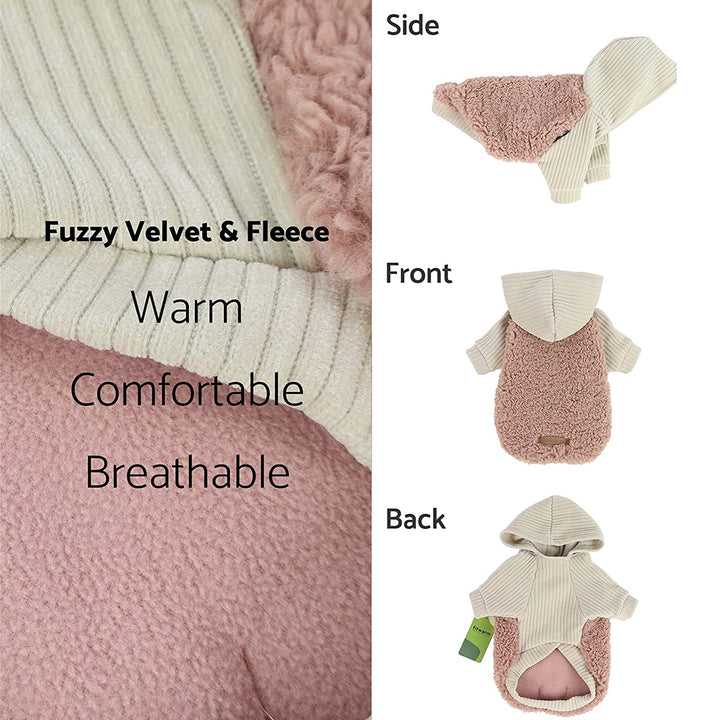Pink Velvet Thermal Hoodie for Dogs with Fleece Sleeves and Hood - Fitwarm Pets
