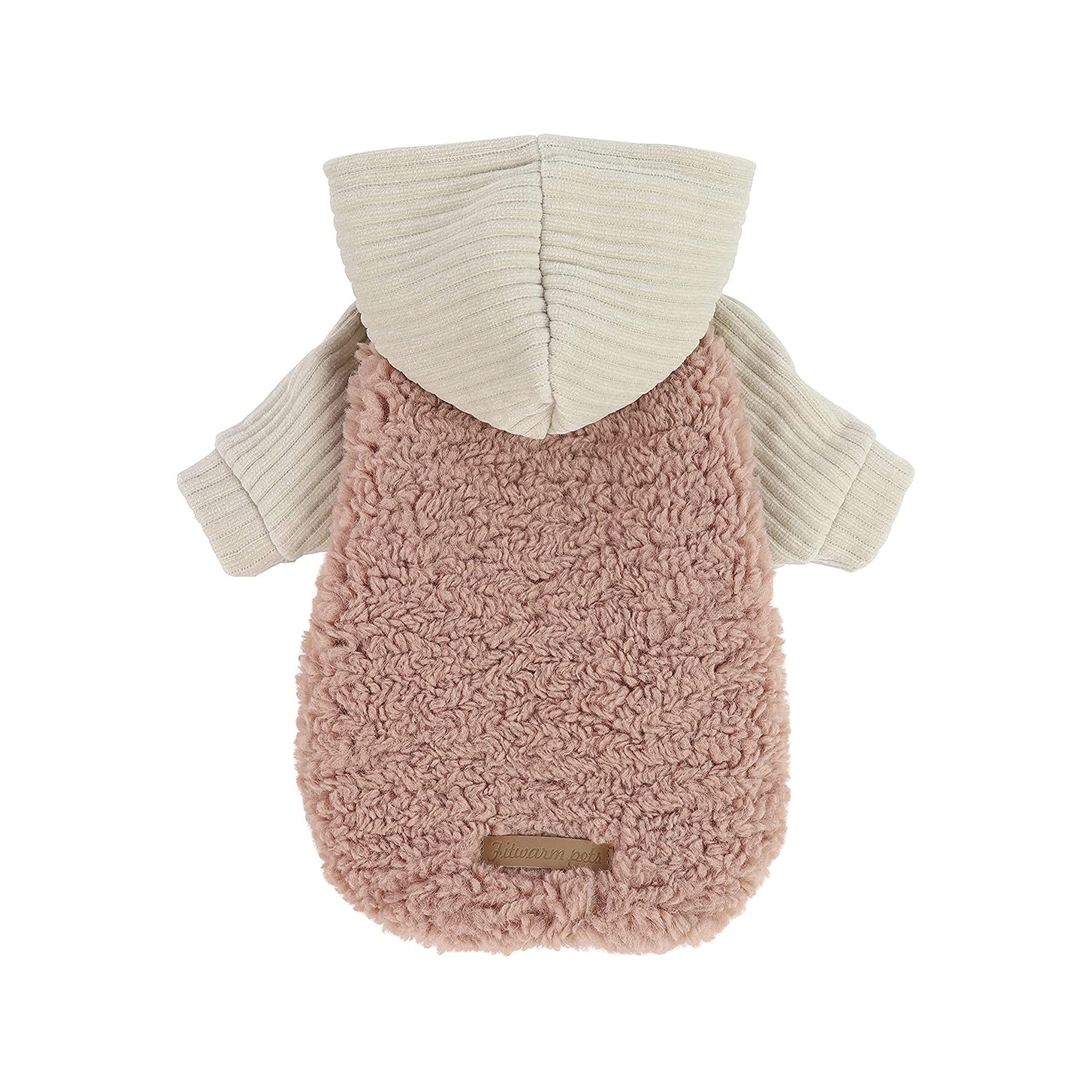 Pink velvet thermal dog hoodie with fleece sleeves and hood from Fitwarm, offering warmth and comfort.