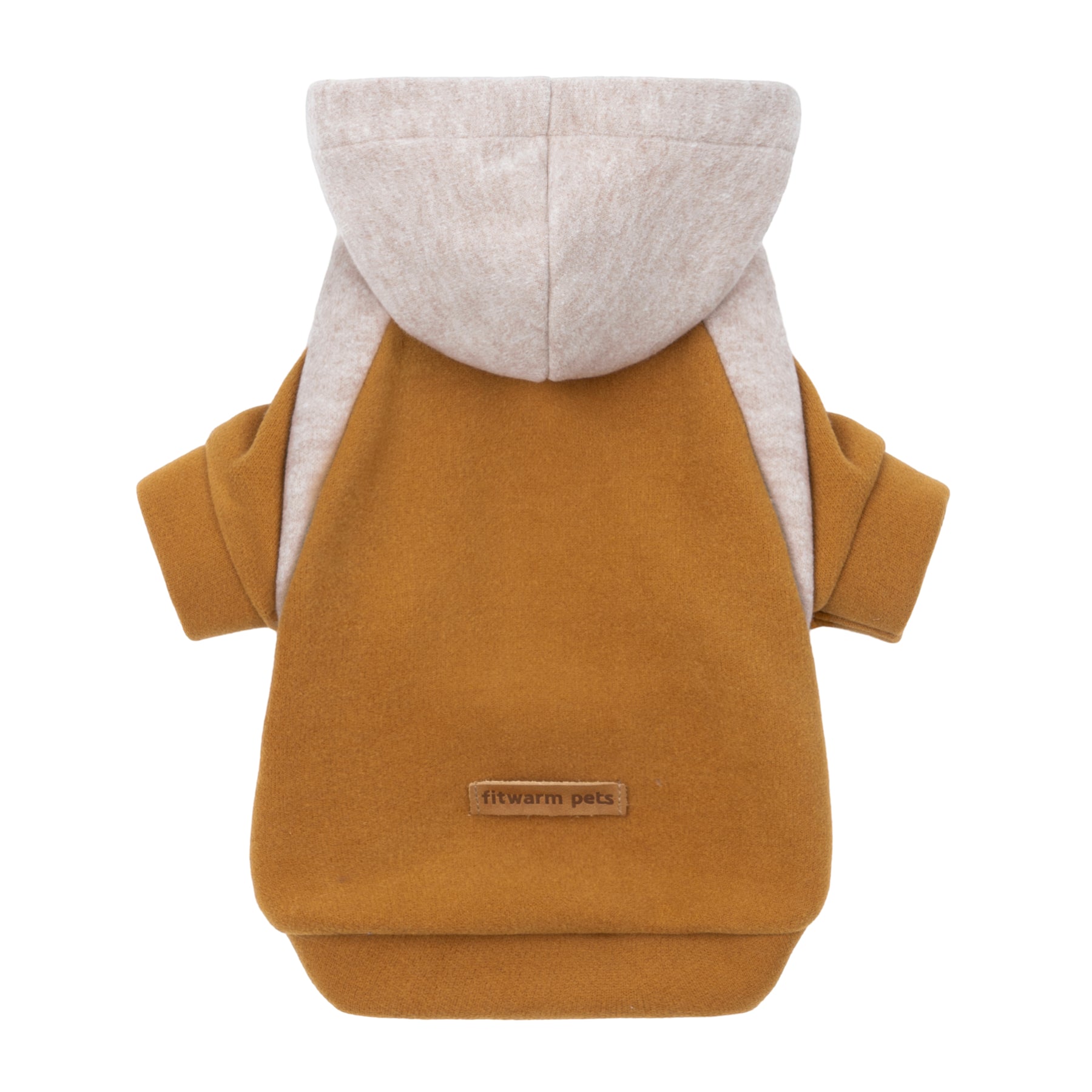 Stylish brown dog hoodie with oatmeal contrast and cuffed details.