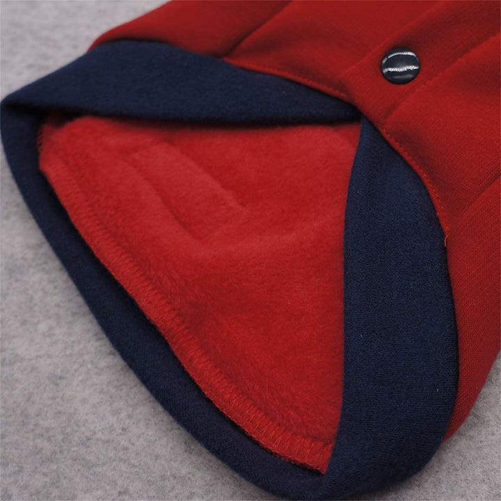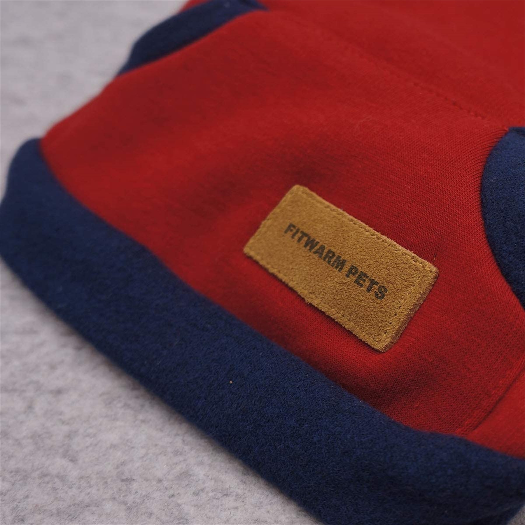 Fitwarm dog hoodie in red with navy trim, comfortable and stylish dog apparel, FITWARM PETS.