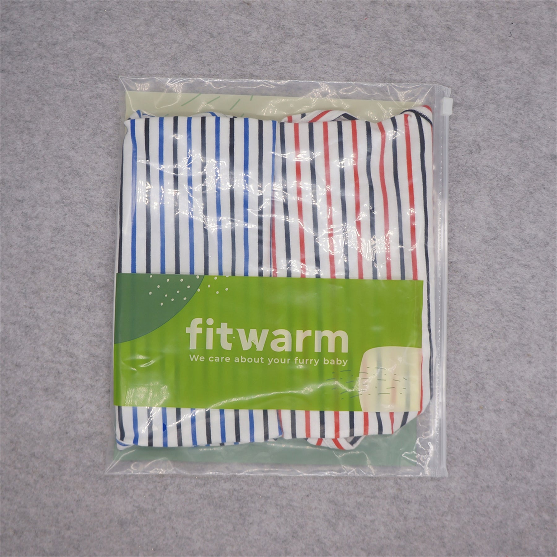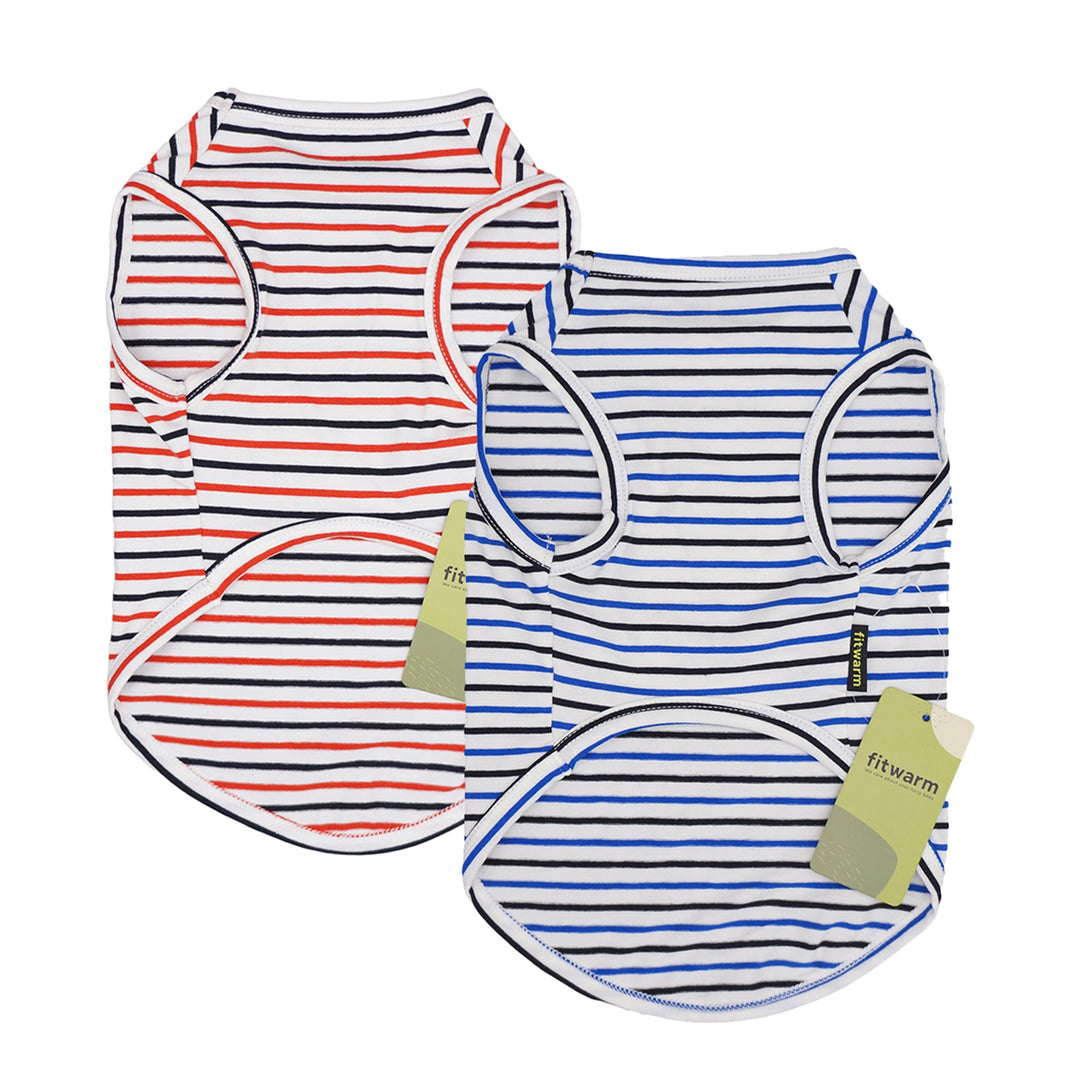 Fitwarm 2-pack striped dog shirts in red, blue, and black stripes, 100% cotton, comfortable and stylish dog apparel.