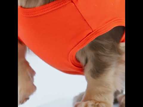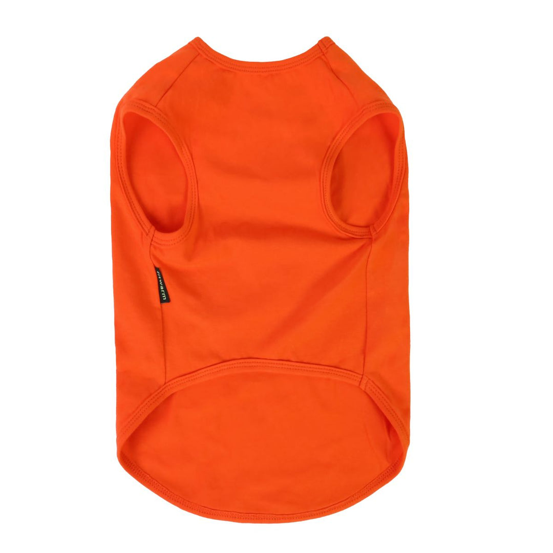 Orange sleeveless dog shirt for small dogs, Fitwarm brand, cotton and spandex material.