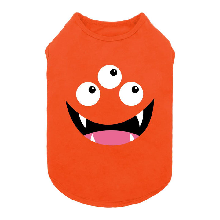Orange three-eyed monster dog shirt for small dogs, cotton and spandex material, sleeveless design