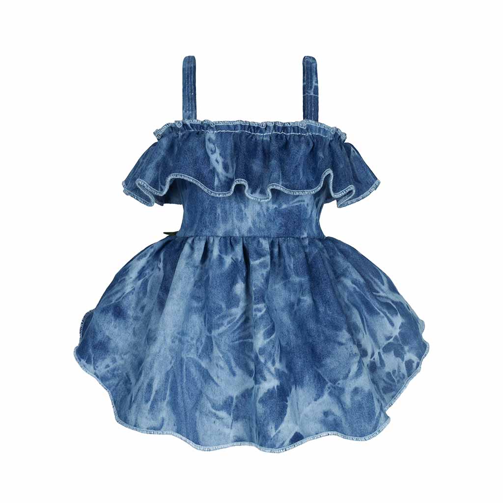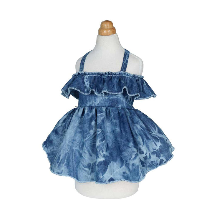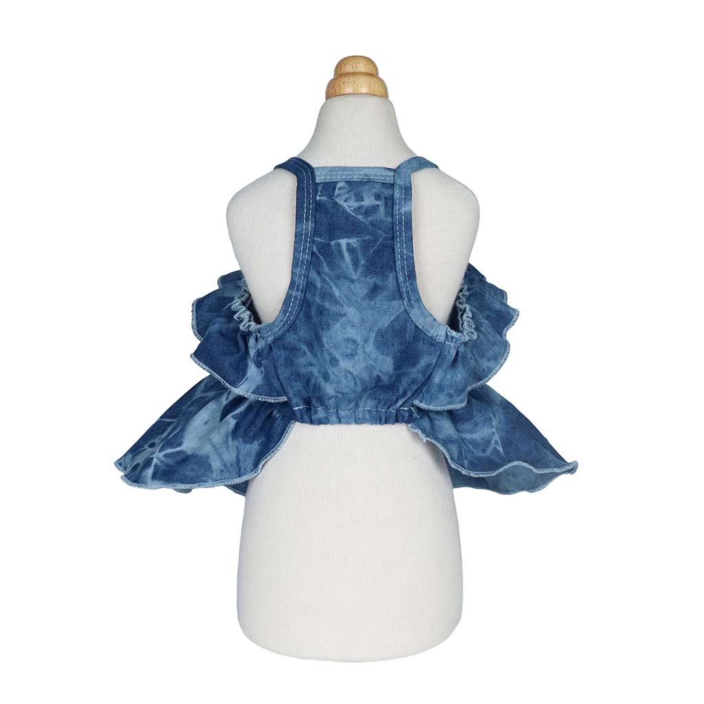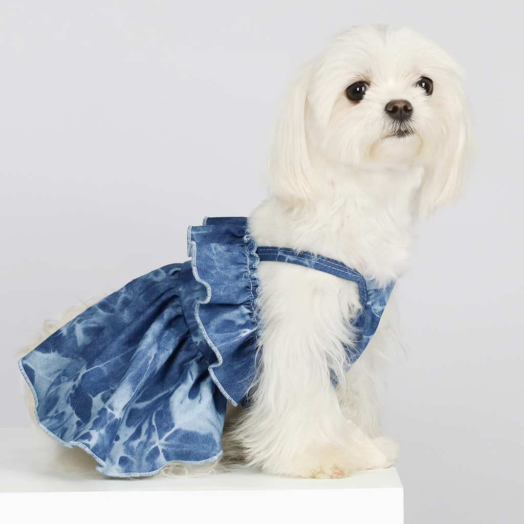 Tie Dye Denim Dog Dress with Ruffles - Stylish princess-style dog summer clothes