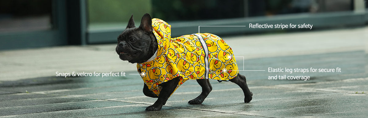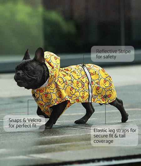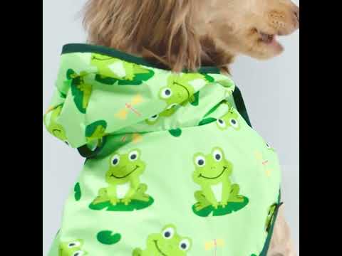 Strawberry daisy and frog pattern dog raincoats. Waterproof, windproof dachshund apparel from Fitwarm