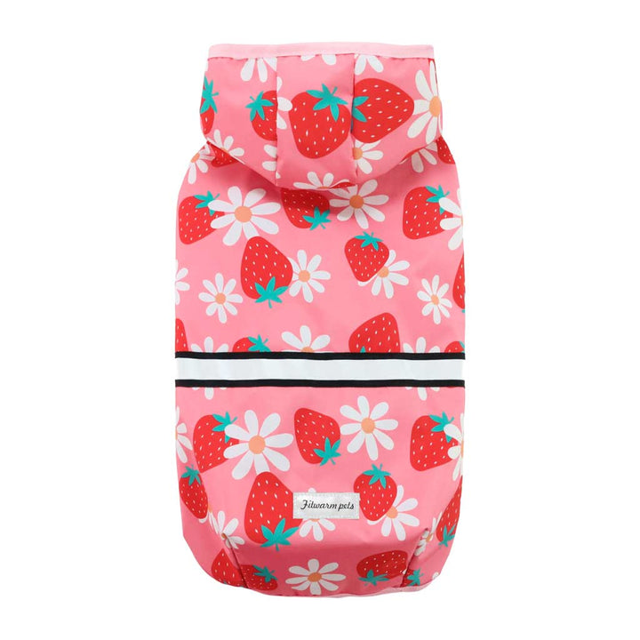 Fitwarm Strawberry Daisy Dog Raincoat - Pink Waterproof Jacket with Hood and Reflective Stripes, soft and comfortable