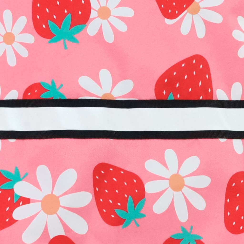Fitwarm Strawberry Daisy Dog Raincoat detail, pink with strawberry and flower pattern, waterproof and windproof.