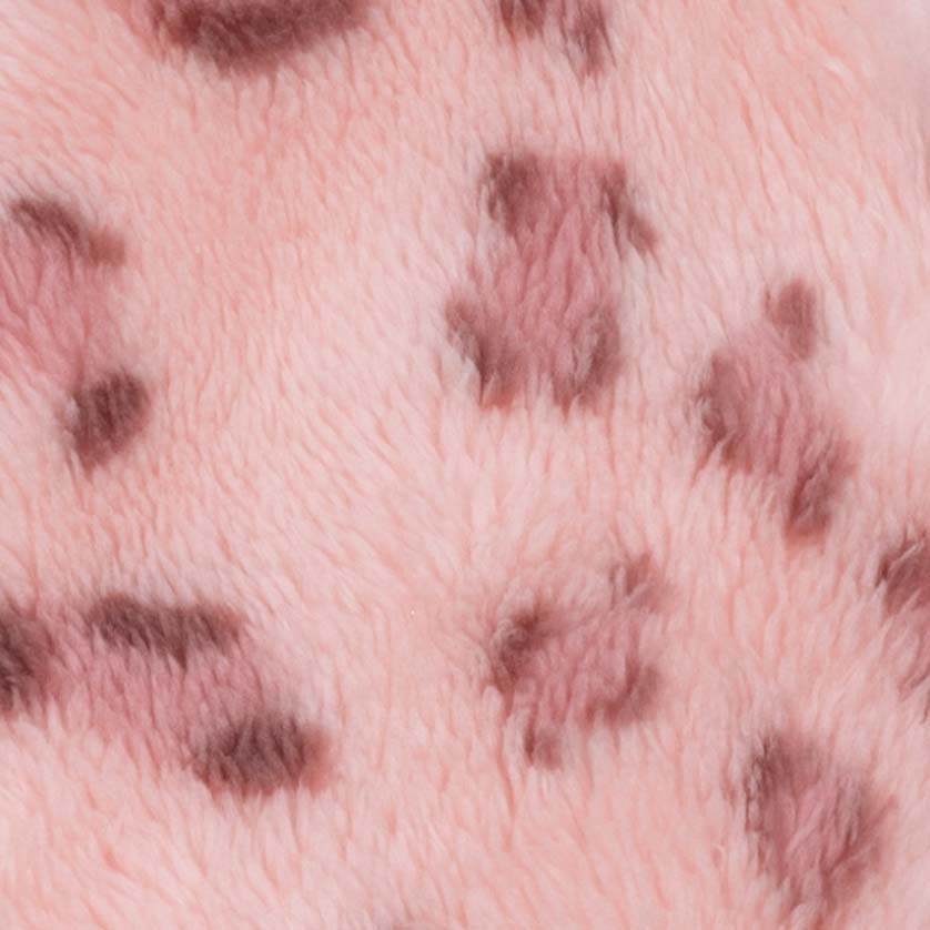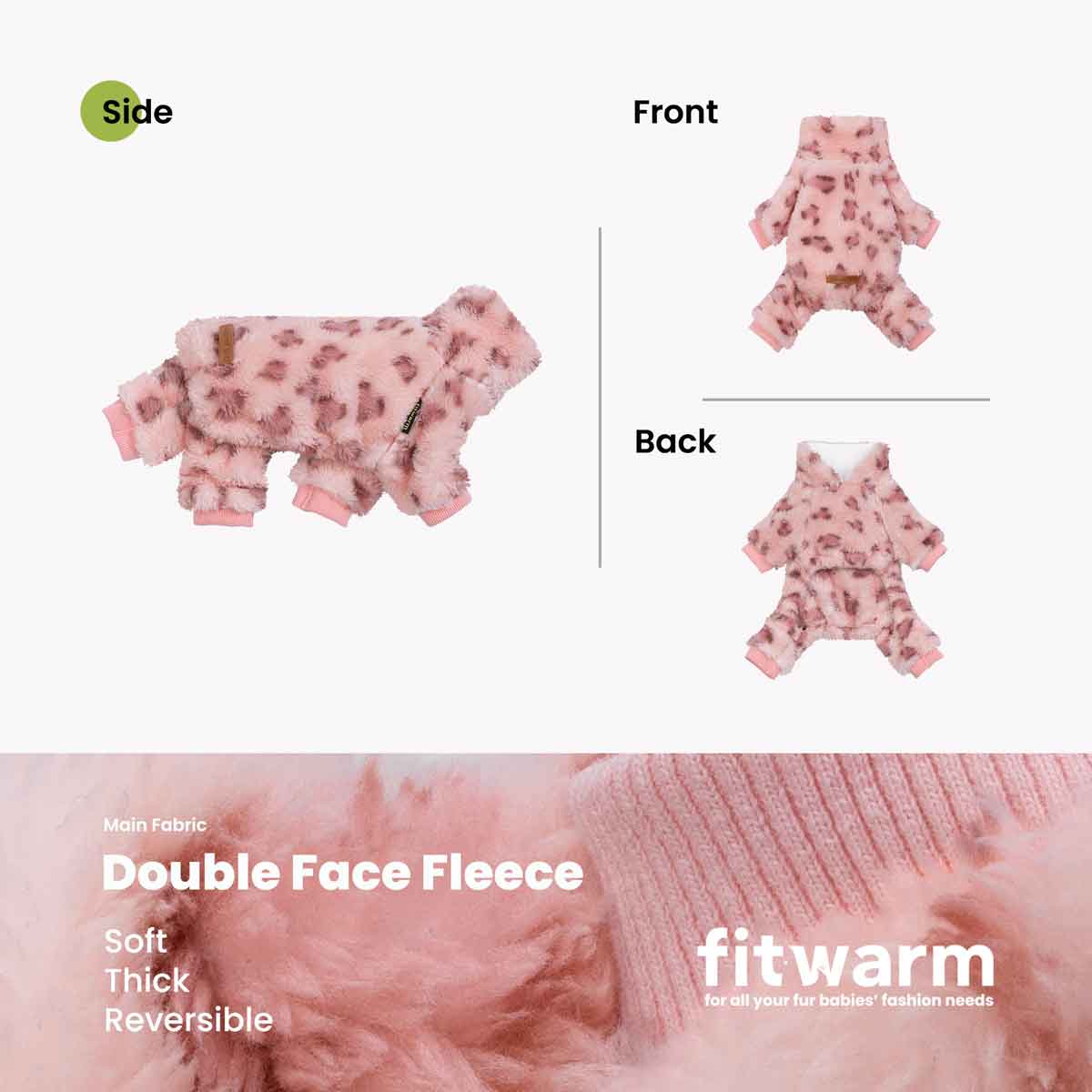 Side view of pink leopard print dog pajamas with soft double-face fleece.