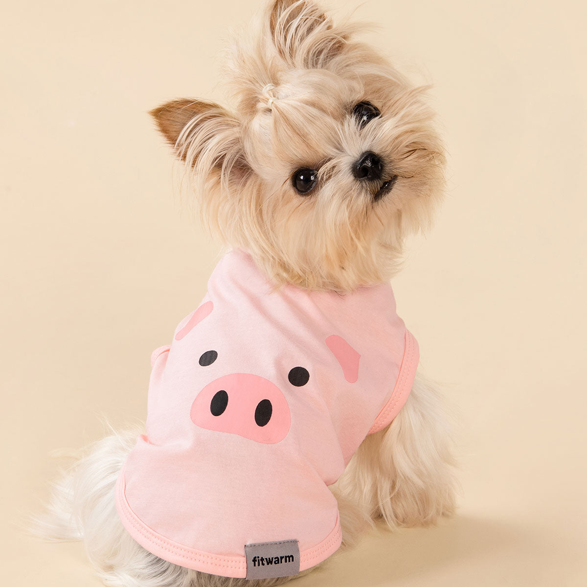 Yorkshire Terrier in pink pig face dog shirt by Fitwarm. Cute dog summer clothes, comfortable, breathable.