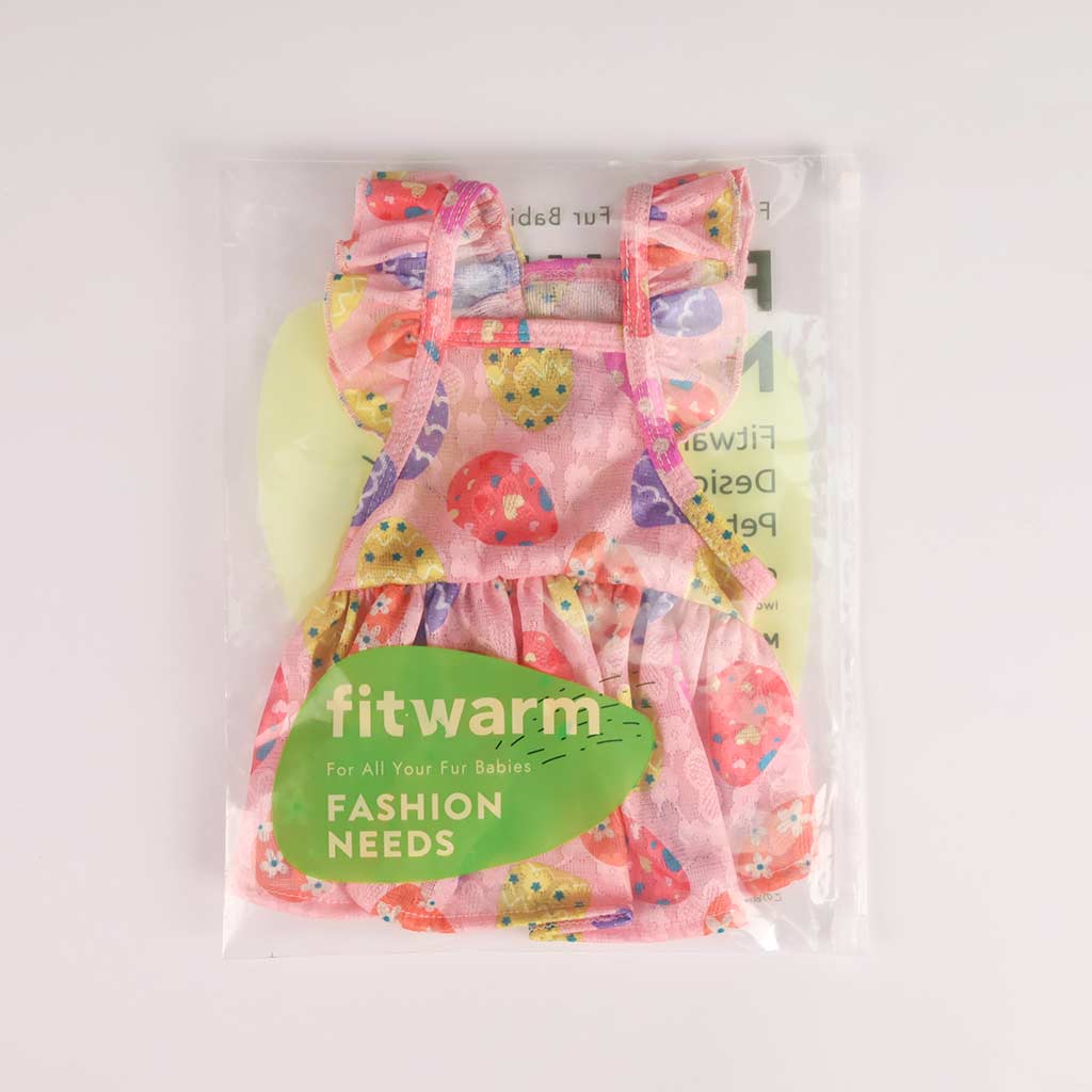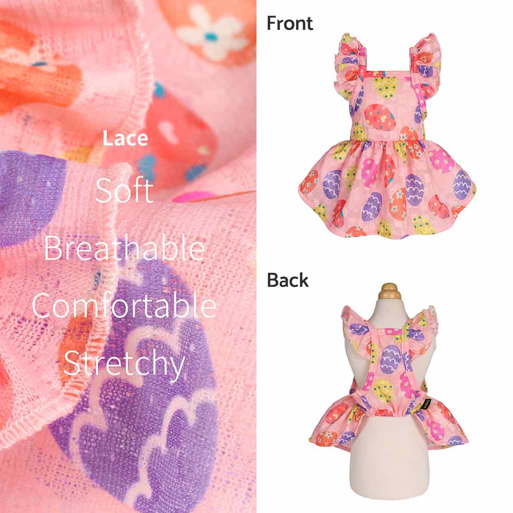 Fitwarm pink Easter dog dress with egg pattern, ruffle sleeves, perfect dog Easter outfit. Fashion Needs.