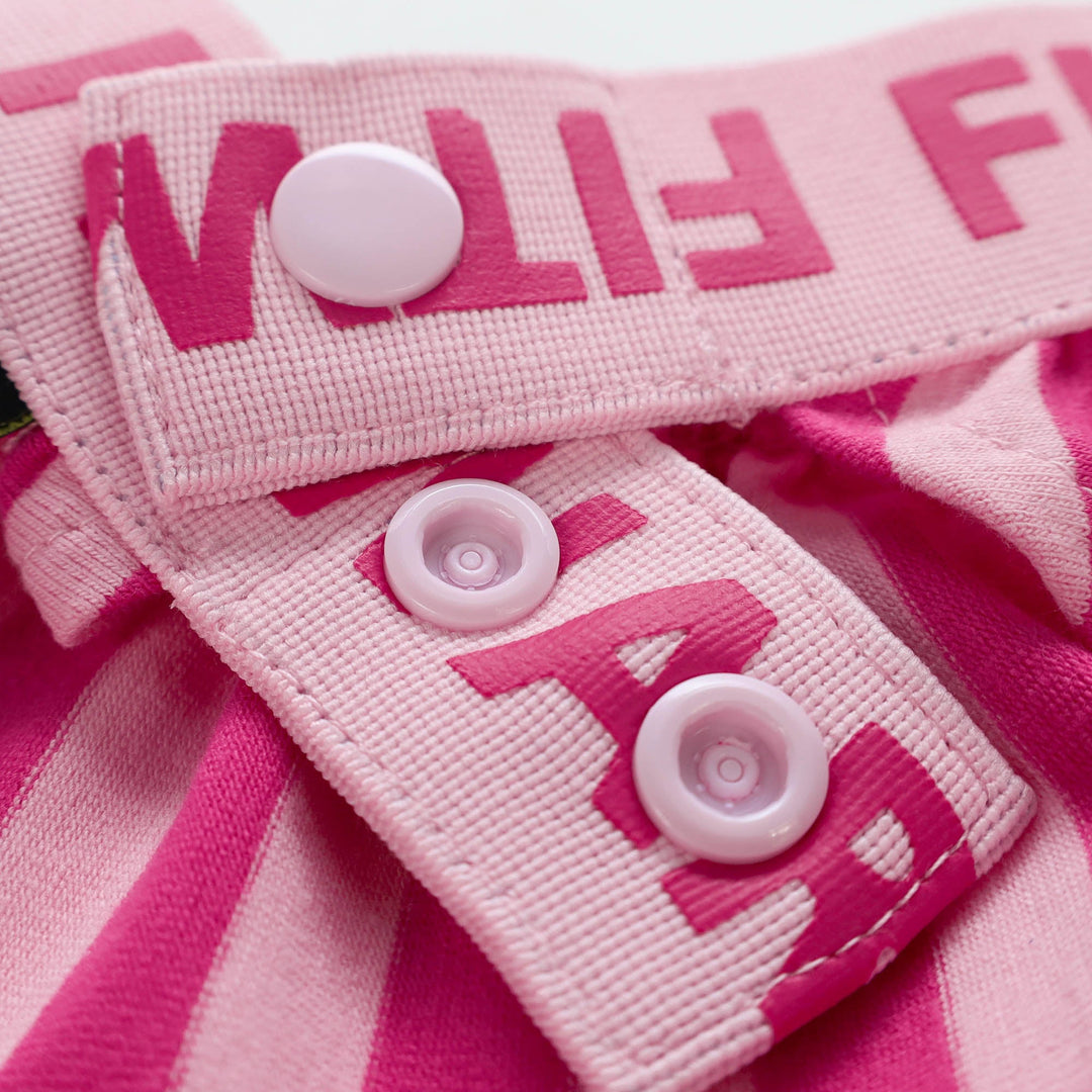 Pink striped dog dress fabric, cotton blend with Fitwarm logo, athleisure wear for small dogs