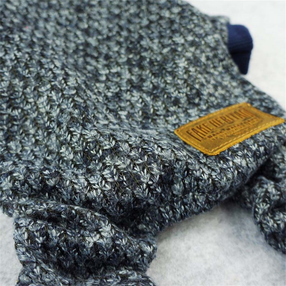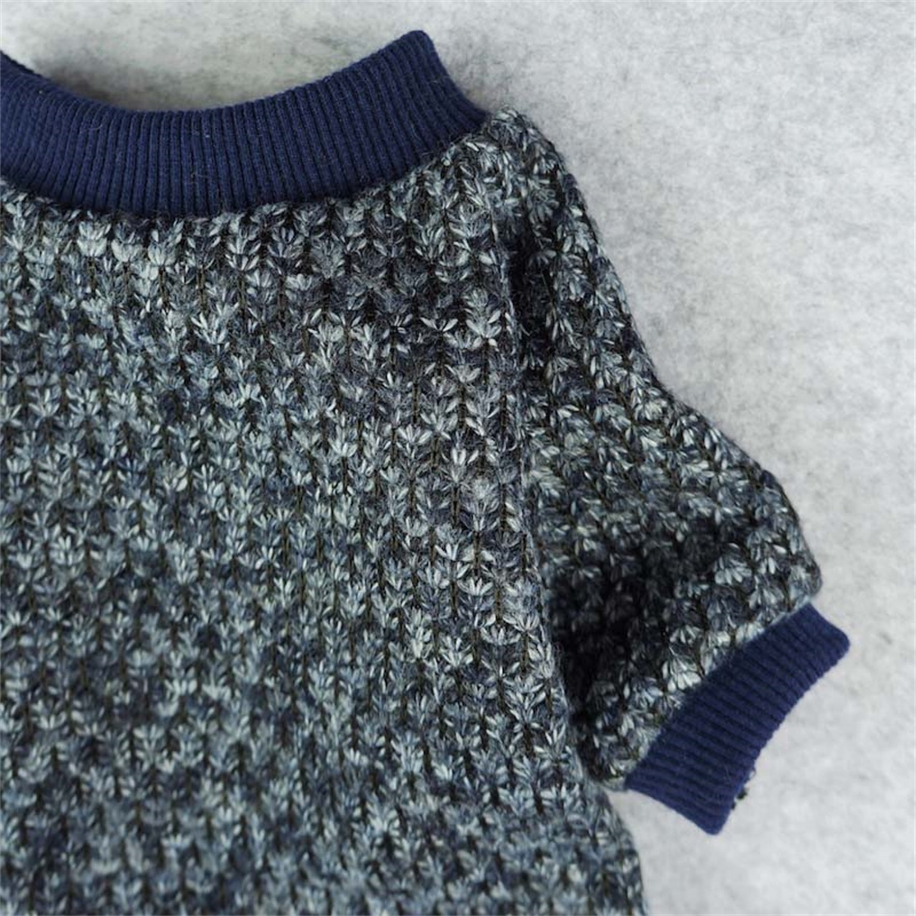 Dog thermal knitted pajamas, grey and blue, 'FAKE HERITAGE' label, for comfort and style