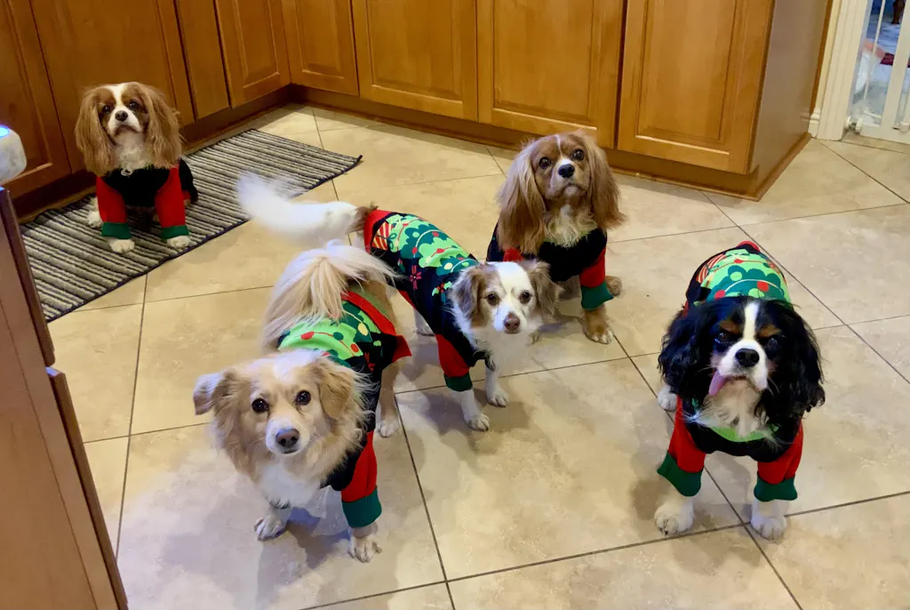 So adorable and Zoë moves in the pajamas so easily. Great for all seasons at bedtime. They keep her warm enough, but not hot so she can wear them in the summer too. Zoë weighs 14 pounds and is a Shih Tzu, wears a medium size and they fit her perfectly.