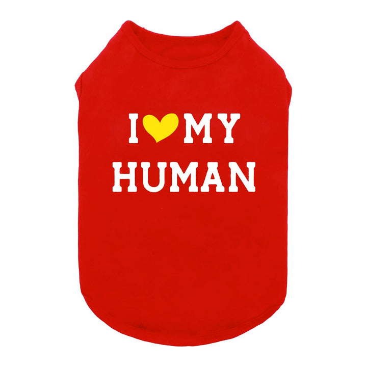 Red "I ❤️ MY HUMAN" dog shirt, perfect for small dogs and cats, sleeveless design