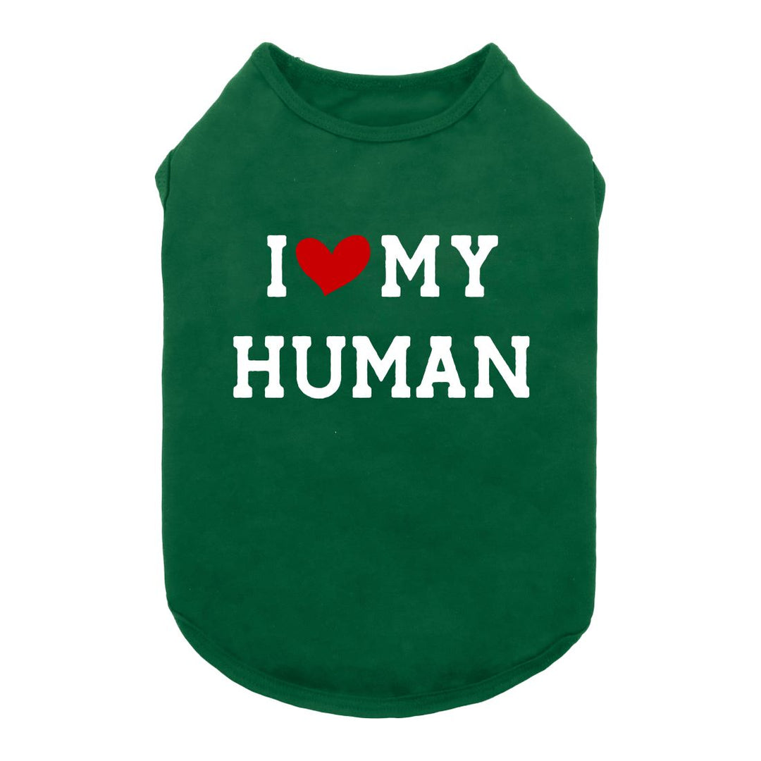 Green "I ❤️ MY HUMAN" dog shirt, perfect for small dogs and cats, by Fitwarm