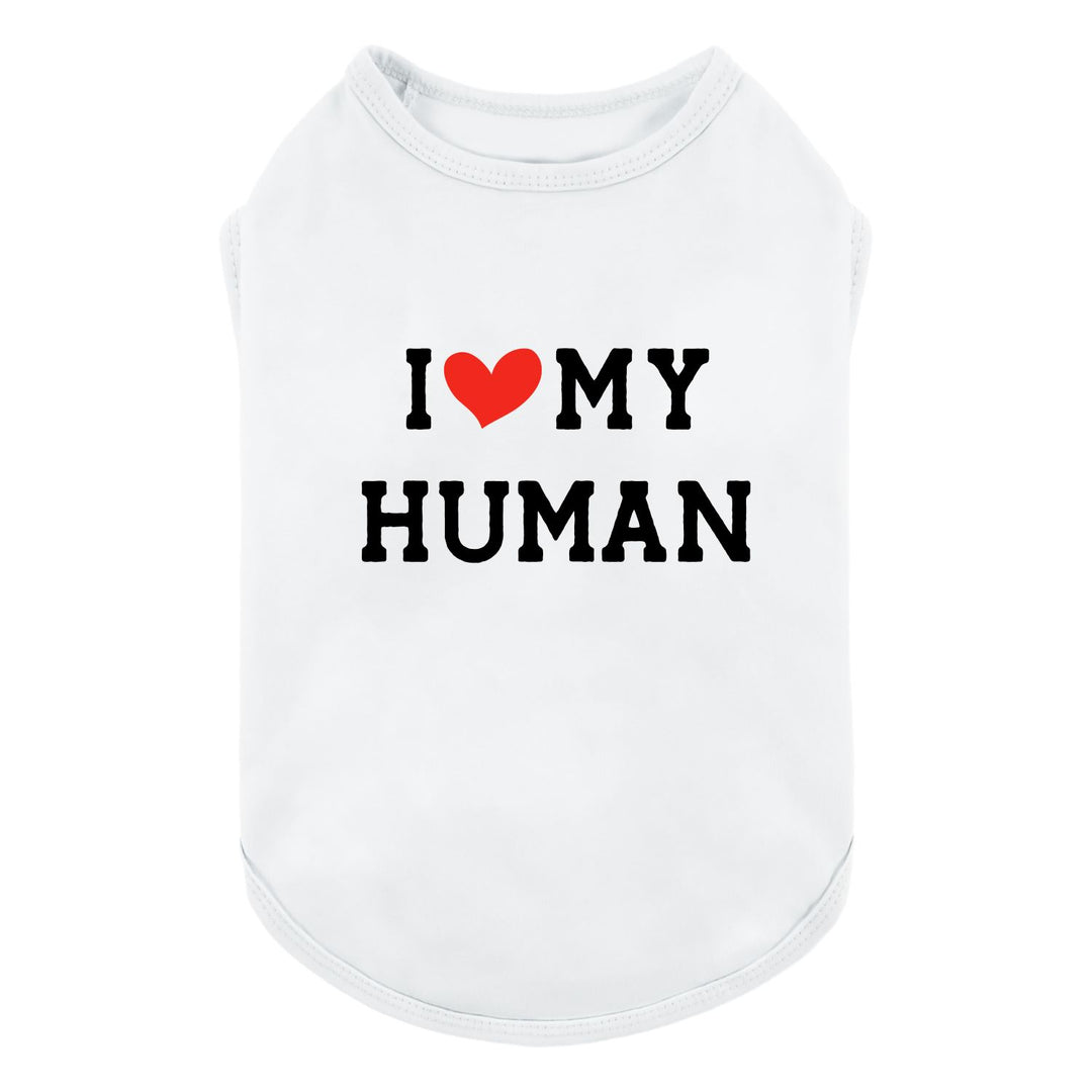 White "I ❤️ MY HUMAN" dog shirt, sleeveless, perfect for small dogs and cats, cotton blend