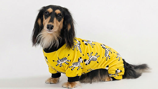 True to size. I'm so impressed with the high quality of these dog pajamas. The fabric is so super soft and luxurious. There's a stretch band so it is easy to get the legs into. Overall I would highly recommend buying these pajamas for your pets!